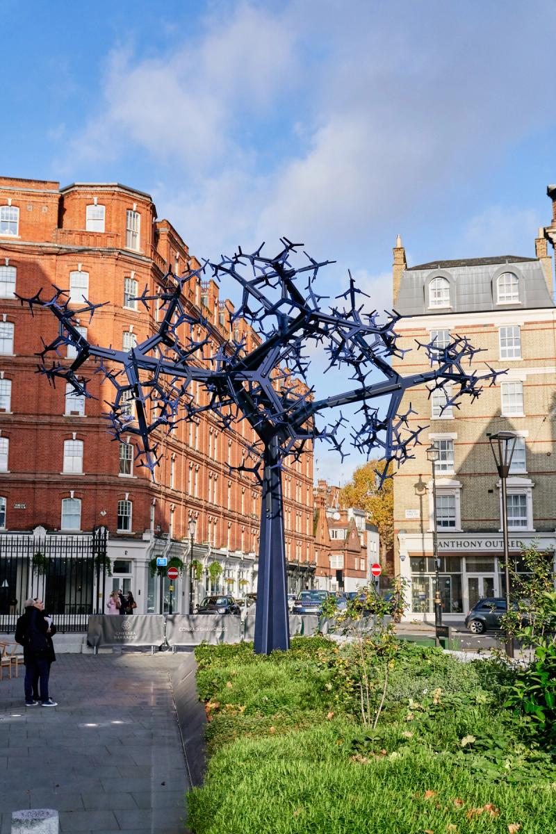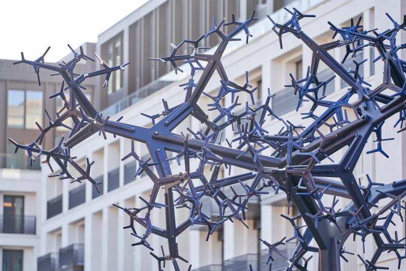 Positioned near the historic Chelsea Physic Garden, the sculpture reflects the local botanical heritage and the emphasis on craft and materiality within the development. Visitors are invited to pause beneath the canopy, using the space as a moment of stillness and reflection within the public realm.