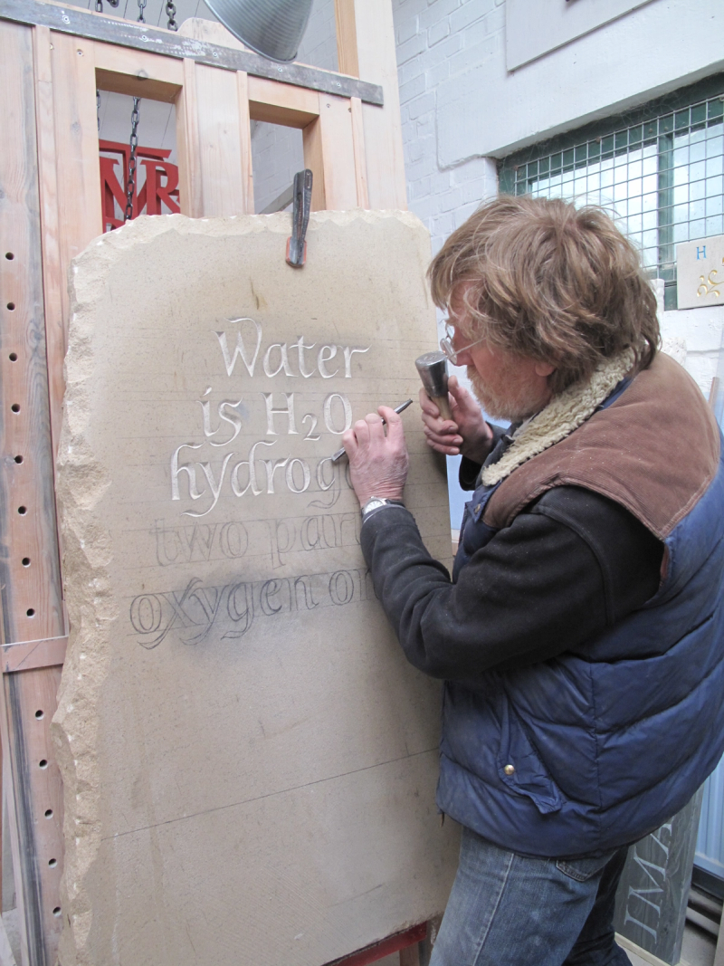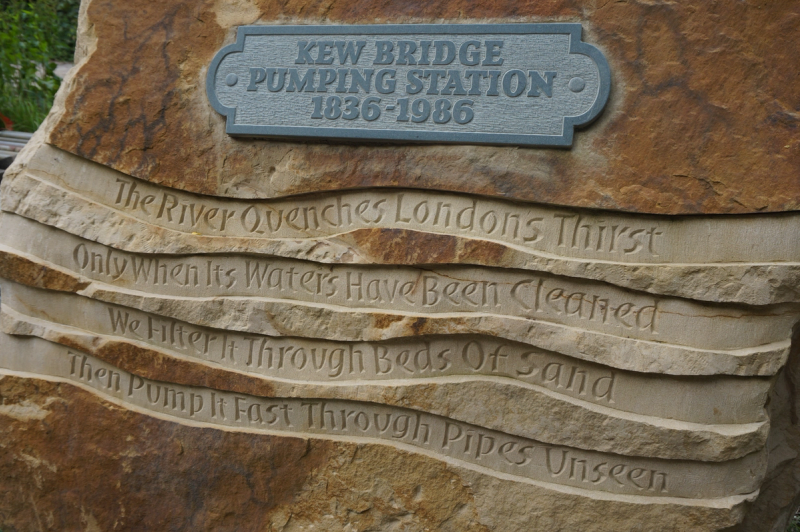 The texts reflect on the role of water in shaping the history and identity of Kew Bridge, inviting discovery through movement rather than direct interpretation. Each fragment has been hand-carved into green slate slabs and rough-hewn York stone boulders using traditional stone-carving techniques.