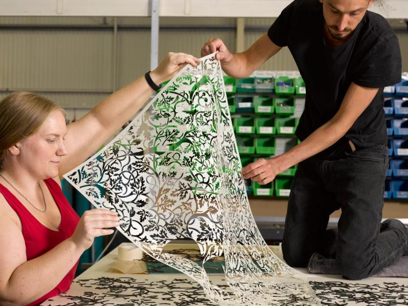 David Thorpe is a passionate advocate for pattern and decoration and the five panels he has created for St James’s Market, Ends Papers and Book Ends, illustrate this.