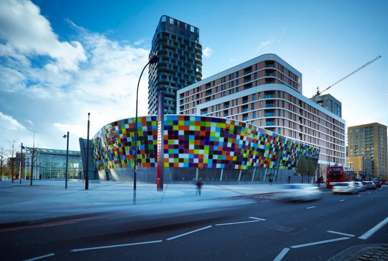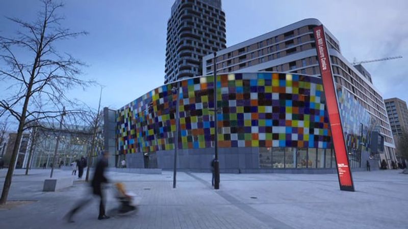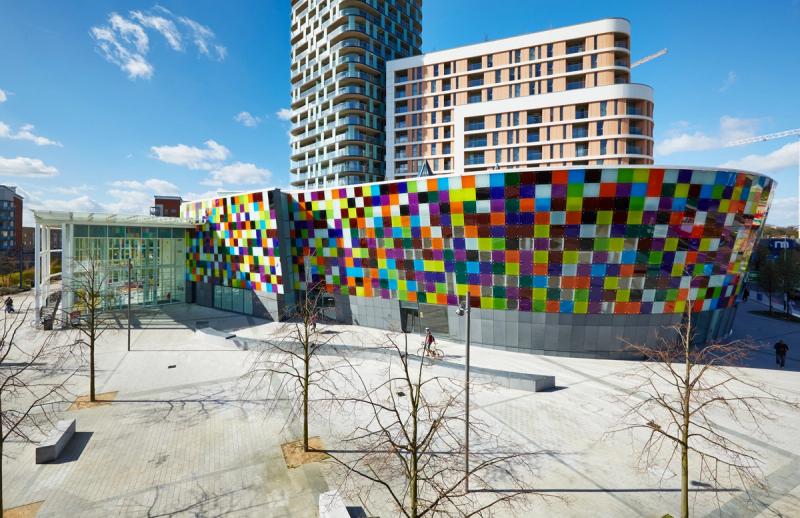 The Glass Mill Leisure Centre is part of the Renaissance mixed-use development in Lewisham, masterplanned by Assael Architects for Barratt London. The scheme includes a public leisure facility and swimming pool, supported by a cultural strategy that embedded art and creative practice into the development.