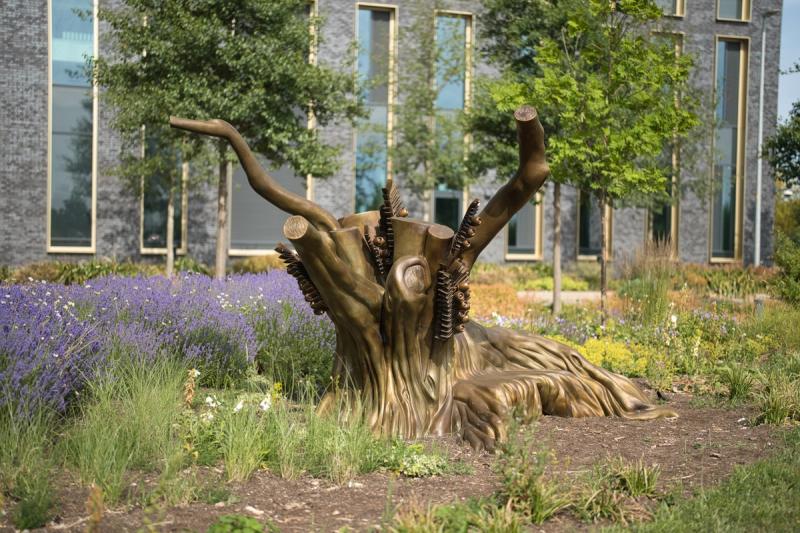 Taking the form of a sculptural Yew tree, the work is both a contemplative landmark and a communal gathering space. Fabricated in welded brass, the sculpture is designed to transform with time, darkening naturally and potentially cultivating lichen across its surface. Seasonal planting will evolve around the piece, reinforcing its central themes of adaptation, resilience and renewal.