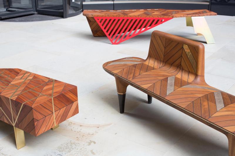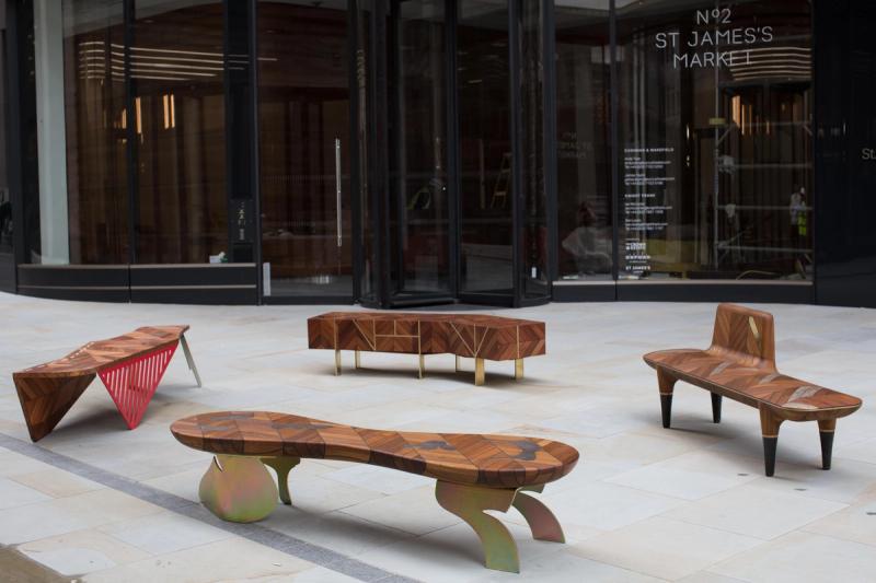 Studio Swine practice research-led design, creating work that is a product of its location, culture and resources, regarding design as a tool for placemaking. The team has designed four benches – Shirt, Tie, Pipe and Shoe – which all reference traditional trades found to this day in St James’s.