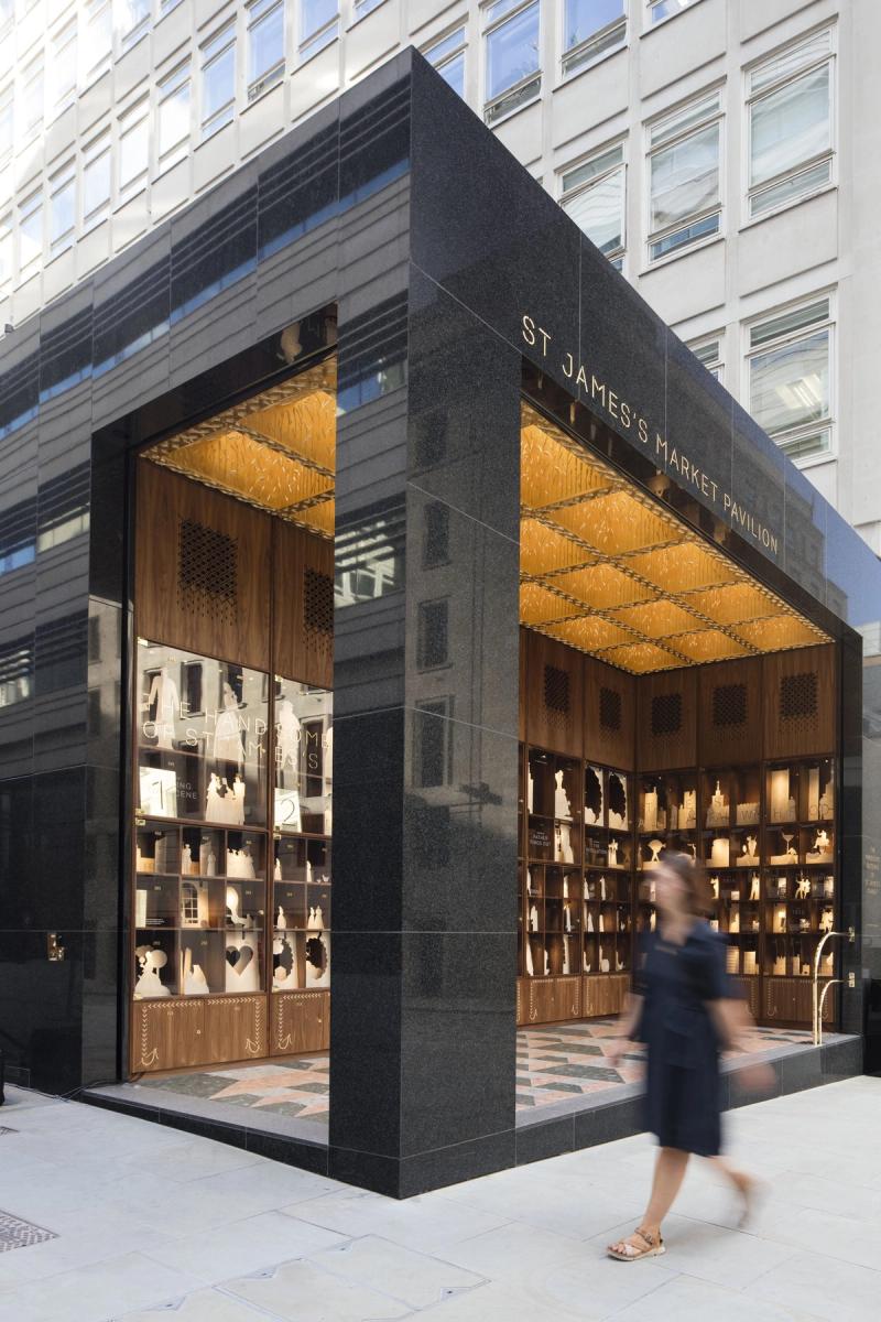 The Safe Deposite is a free standing pavilion designed by Studio Weave. It is conceived as a location for public performances, events and exhibitions and nods to a cabinet of curiosities that evokes the design language of Victorian safe deposit boxes, of which historically there were two nearby. The architectural folly was intended to be a temporary intervention, but has remained a permanent local fixture, adding to London lore.