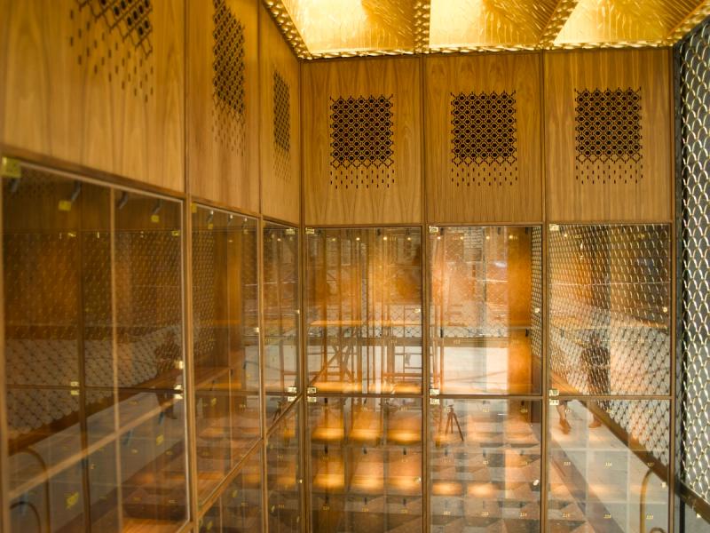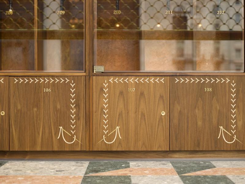 Glass and copper vitrines cover the walls, fitted with small heaters to prevent condensation, are designed to provide a gallery without walls for the curation of the creativity and craft of neighbouring artisan businesses.