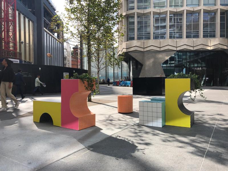 The artwork brief for the first installations in St. Giles Square’s art programme was to have pieces that were original and playful, which would invite passers-by’s to take a moment to sit and enjoy the square. Following a selection process with Almacantar, the two chosen artworks – Whippet Good and City Blocks by Astrain Studio, which were cited in the square at the same time – reflected a sense of calm and greenery, and embodied an invitation to slow down and relax in an urban oasis. Both installations were two of the five winners of the City Benches competition for London Festival of Architecture, chosen from nearly 100 entries by a group of judges including Ellie Stathaki, Wallpaper* architecture editor.