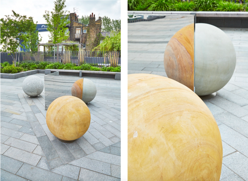 Futurecity has worked in partnership with Mount Anvil to curate and deliver a series of public art commissions across three of their new developments in London: Untitled by fine jewellery designer Jo Hayes Ward at Queen’s Wharf (Riverside Studios), Column by artist-architect collective Studio Swine at the Lexicon, City Road, and Ecliptical Spheres by contemporary artist James Hopkins at Dollar Bay.