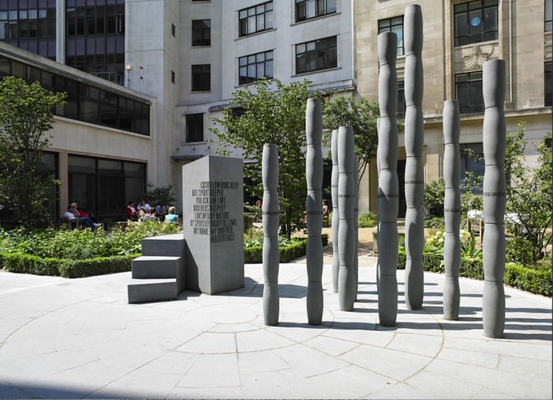 Gilt of Cain by poet Lemn Sissay, sculptor Michael Visocchi, and graphic designer Gareth Howat for Fen Court Garden, London