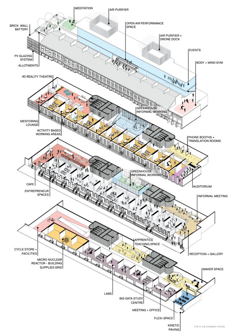 The competition asked multidisciplinary teams of young architects, designers, engineers, developers, agents and other professionals and consultants to consider ‘the office of 2035: what it will look like, and how it will support the way we will work’. Three teams were shortlisted out of 34 submissions.