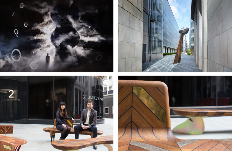 St James Market Bespoke Furniture — playful street furniture bringing color and character to London’s St James Market.