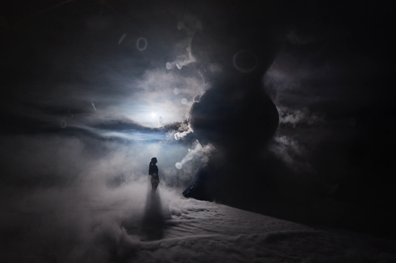 ∞ (Infinity) Blue (2018) — Towering nearly 9 metres high, this monumental ceramic installation pays homage to the microscopic cyanobacteria that produces the oxygen we breathe. The intricate surface, glazed with local Cornish clay and modelled after reaction-diffusion patterns found in coral and zebra stripes, houses vortex cannons that emit mist rings scented by Givaudan, world leading fragrance company, with a scentscape evoking primordial Earth.