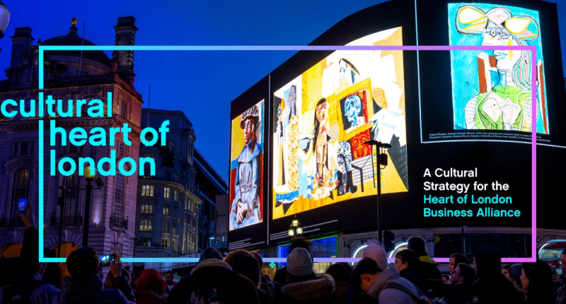 For 8 months Futurecity has been developing an ambitious Cultural Strategy for the Heart of London Business Investment District (HOLBA) designed to develop its organisational structure to connect, lobby, promote and advocate for the creative talent that makes the West End the epicentre of our global city of culture. The Cultural Heart of London Strategy provides a vision, framework and toolkit for HOLBA’s 600 members to develop original arts and business cultural projects with one other, with major cultural organisations, and with London and international creatives.