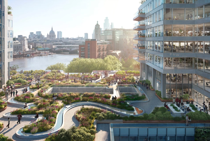 Futurecity was appointed to deliver placemaking strategy and broker new cultural occupiers for 72 Upper Ground a 2.5-acre site on London’s South Bank. Designed by Make Architects, the proposal will bring affordable workspace tailored to the needs of Lambeth’s emerging creative industries, cultural venues, cafes, and restaurants and transform 40% of the site into public realm, opening up the site to the South Bank. The design includes a new public rooftop restaurant and terrace, two new public squares, an active ground floor and several public walkways. A new arts and culture innovation hub will introduce new creative opportunities such as immersive gallery and performance spaces and presentation spaces looking directly onto the river. These opportunities will all provide new jobs and skills for the local economy while integrating and complementing the existing offering along the South Bank. It has been tailored to the needs of emerging creative industries through an on-site residency programme with Lambeth-based organisations including Black Cultural Archives, Iconic Steps and Young Creators UK.