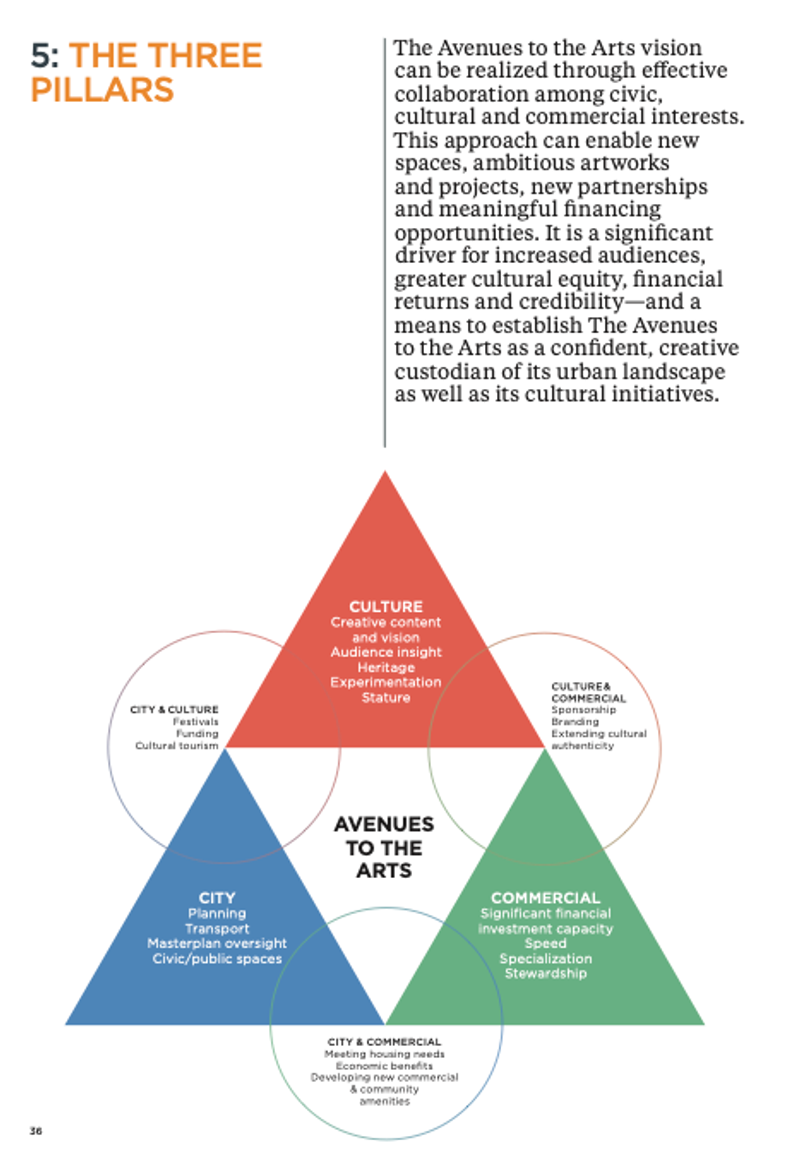 The end game for the Avenues to the Arts is a new approach to urban renewal, one that sees architecture, infrastructure and public realm as having cultural value. It joins up businesses, community groups, cultural organisations and city authorities and provides a distinct narrative and vision for the area.