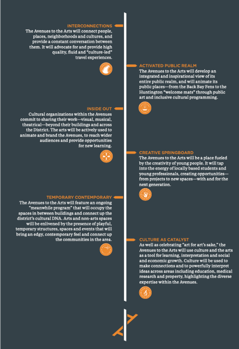 The Avenues to the Arts Cultural Placemaking Strategy explored ideas for a new creative district in Boston, joining up a key cluster of arts, higher education and research organisations the run along Huntington & Massachusetts Avenues.