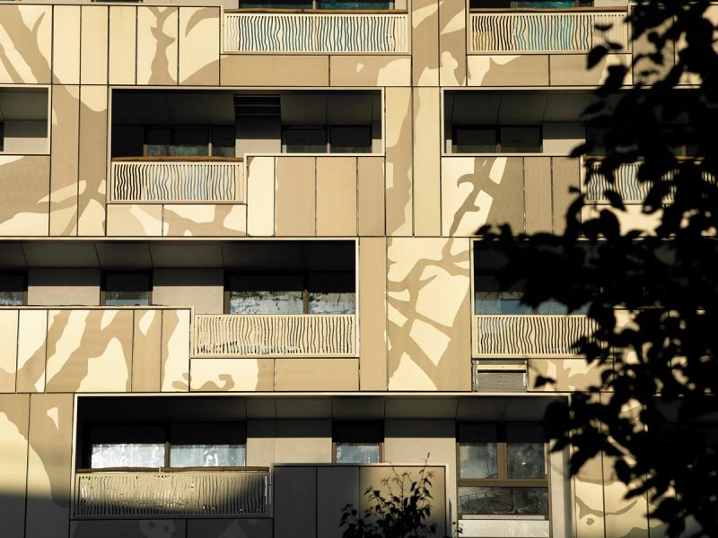 Bramah House by Claire Woods, a collaboration with Make Architects on the vast aluminium facades of two large private and social residential housing blocks.