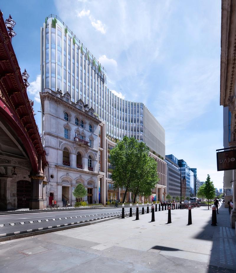 The scheme introduces entrances at two levels – one on Farringdon Street and another at the Holborn Viaduct level – and would create a new public route and a lift to improve connectivity. The redevelopment provides an opportunity to create a new gateway to the City of London’s Culture Mile.