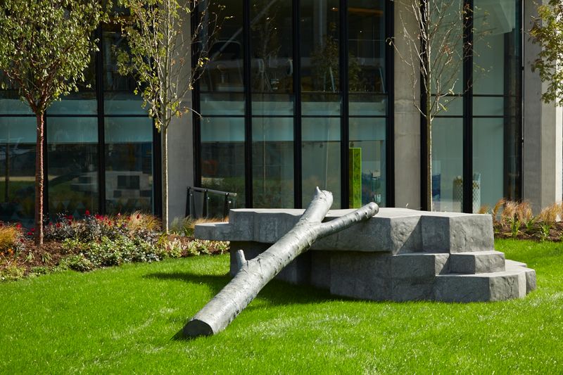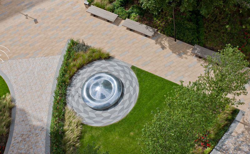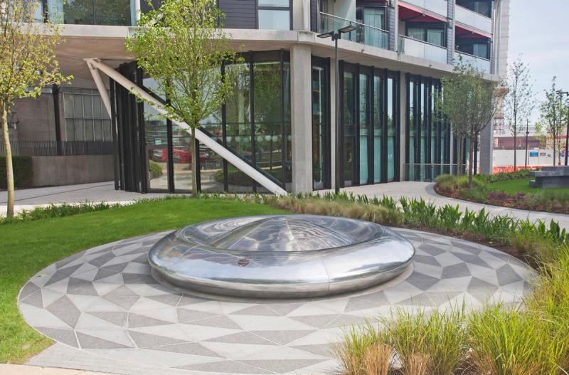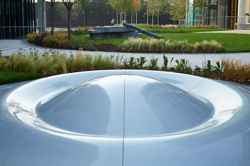 A ‘Lead Artist’ programme commissioned Simon & Tom Bloor, Kate Davis, and Peter Newman to collaborate with landscape architects Gillespies. Bloor’s Terra Ludi includes a sculptural bronze tree and stone outcrops integrated into the landscape. Davis and David Moore’s Light & Water uses reflective materials and seasonal shifts to create hidden interventions. Newman’s Skystation offers public seating designed to encourage sky-gazing.