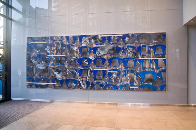 Futurecity also brokered a partnership between St James and the Royal College of Art to establish StudioRCA, a meanwhile cultural space offering exhibitions, events and residencies. The partnership extended through the RCA Riverlight Award, commissioning five RCA Fine Art graduates to create permanent site-specific works for the residential lobbies - each visible from Nine Elms Lane and the Thames River Walk.
