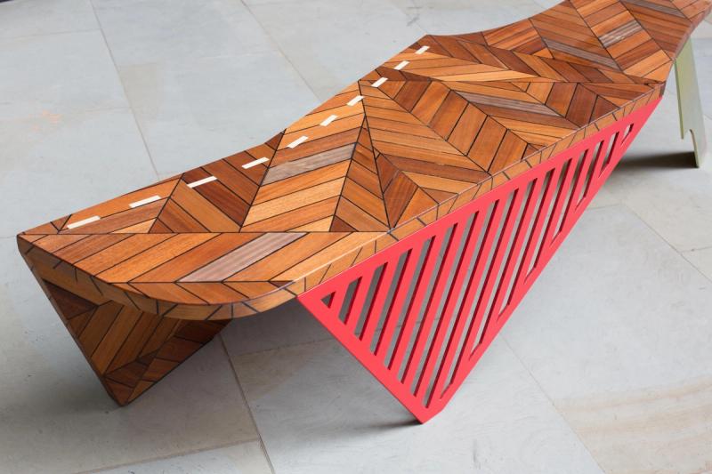 Curated and managed by Futurecity, Studio Swine’s Street Furniture – unique benches, Pipe Bench, Shoe Bench, Shirt Bench and Tie Bench, and Loom Chair & Stool, David Thorpe’s ornate hand-made leather and ceramic panels, End Papers & Book Ends, and Studio Weave’s exquisitely designed pavilion, The Safe Deposite, collectively bind the history and characteristics of the area with the new scheme and carry the legacy of St James’s long into the future.
